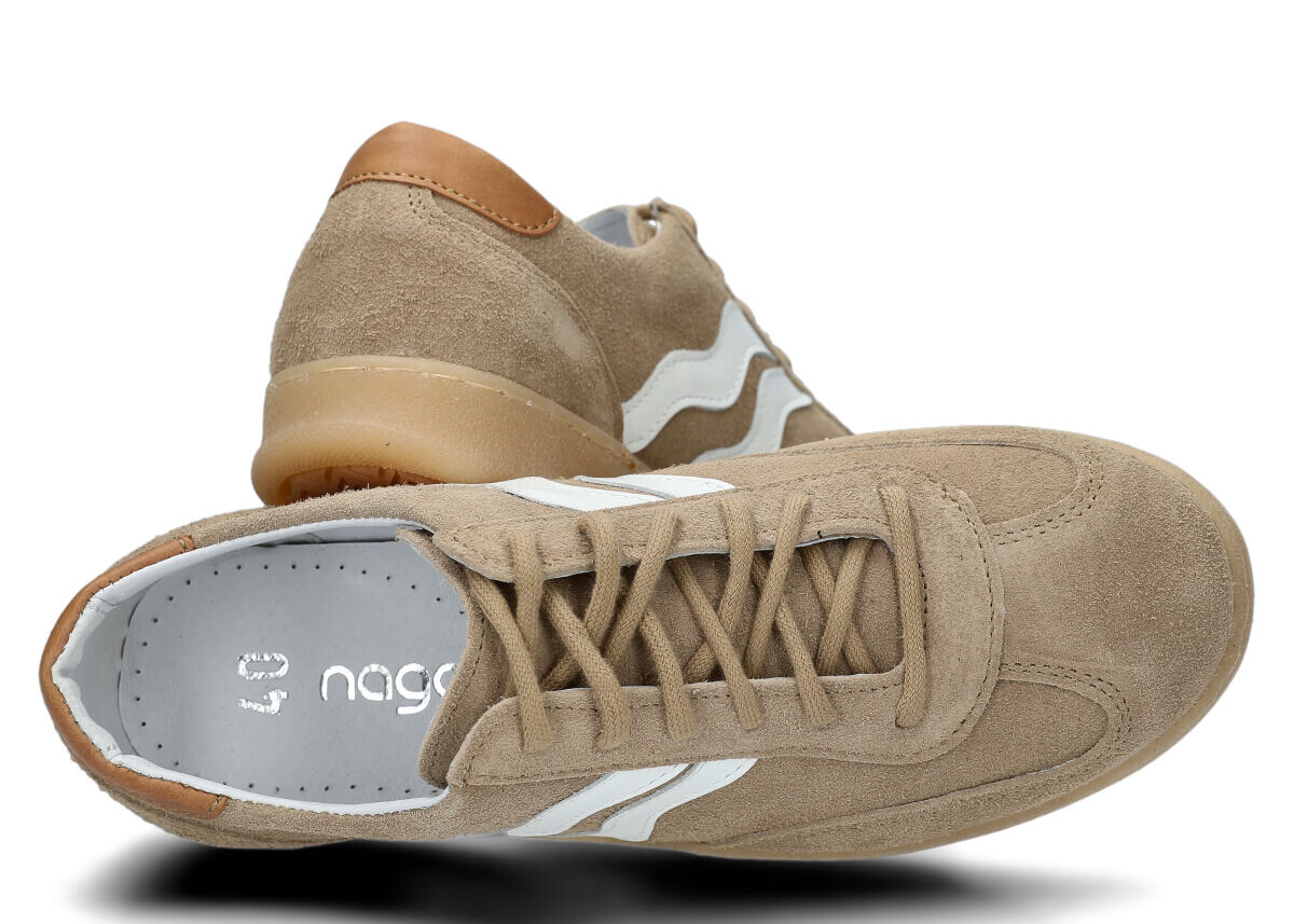 Poltopánky Nagaba 129 z béžovej velúrovej kože sú klasikou. Model, ktorý odkazuje na najnovšie trendy.