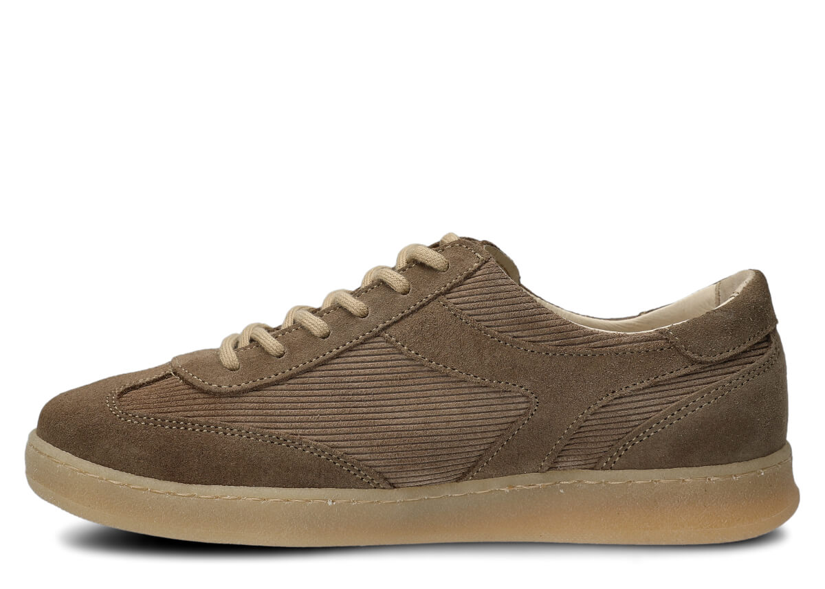 Retro dizajn – manšestrové prúžkovanie na velúre, šnúrky a prešívanie v tóne zvršku – vytvára športovo-mestský look, ktorý skvelo ladí s džínsami, sukňami aj legínami. Sú to topánky pre tých, ktorí si cenia originalitu: neobyčajný manšestrový vzor dodáva ležérnym outfitom eleganciu, zatiaľ čo športový akcent zaručuje, že skvelo fungujú v dynamickom, mladom životnom štýle.