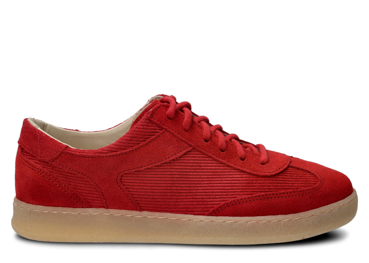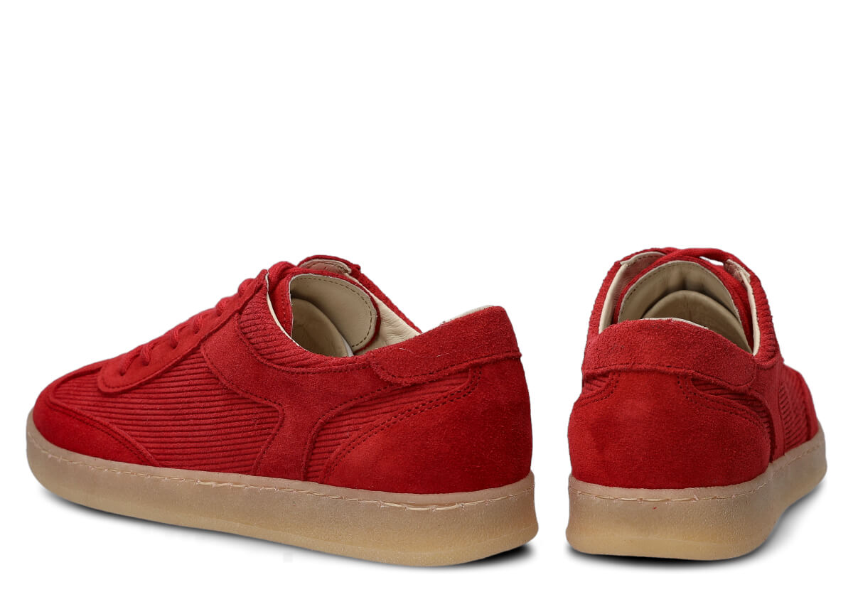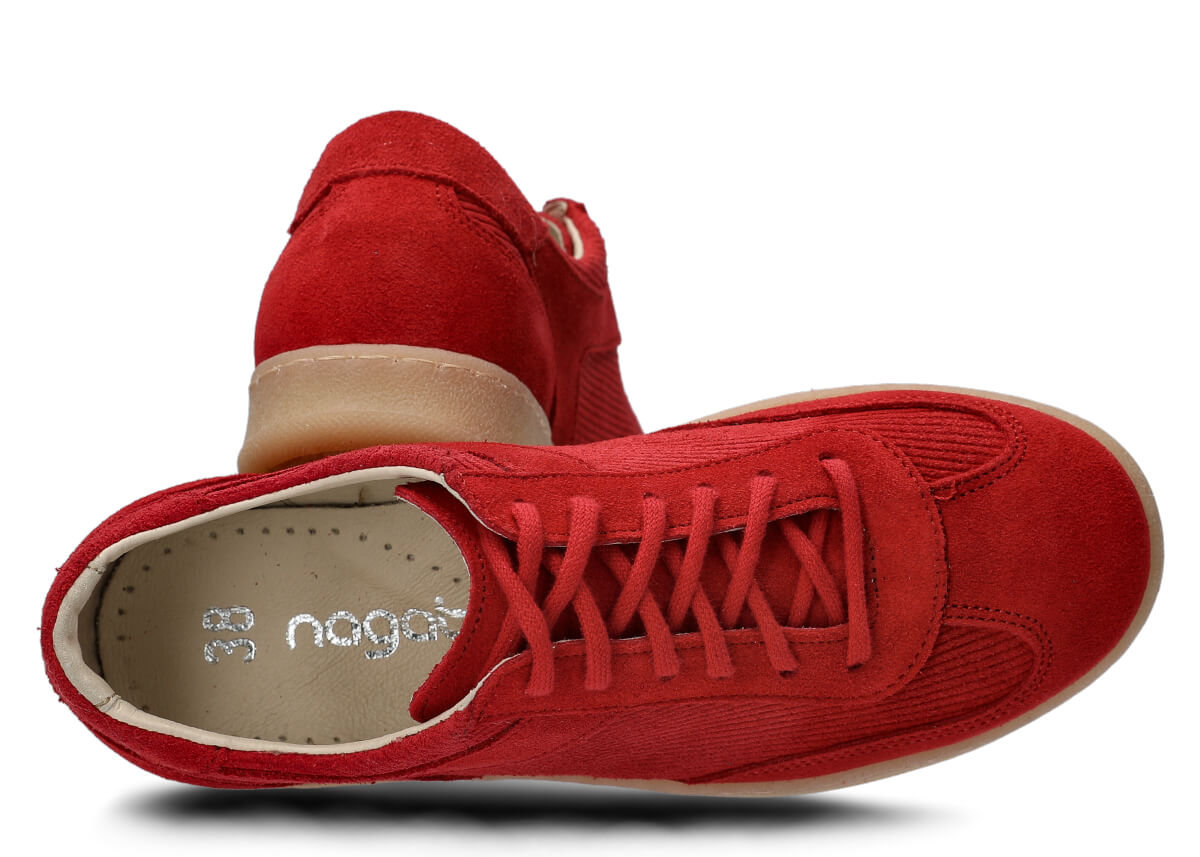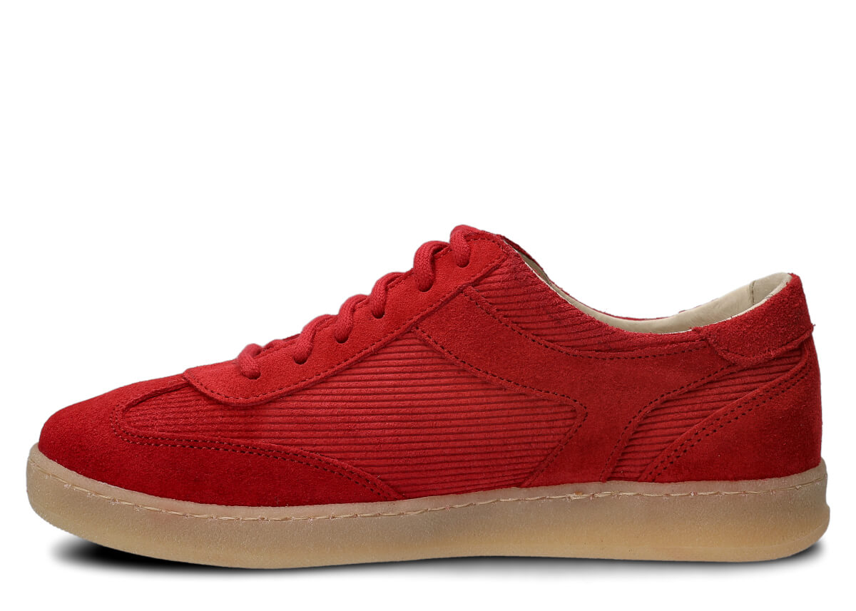 Dámske kožené poltopánky Nagaba 130 v odtieni červená velúr prenášajú klasiku módy do moderného kontextu – ideálne pre mladé ženy a tínedžerky, ktoré hľadajú pohodlné topánky s charakterom. Zvršok je ušitý z prírodnej velúrovej kože v jednotnej červená farbe, obohatený o prírodnú velúrovú kožu s prúžkovaným manšestrovým vzorom, ktorý evokuje vintage trendy 70. a 80. rokov a dodáva outfitom jedinečný, kultúrny retro vibe. Ručne vyrobené na Slovensku… (prep.: v Poľsku) z vybraných materiálov, tieto mládežnícke poltopánky spájajú mäkkosť velúru s praktickosťou do mestských ulíc.