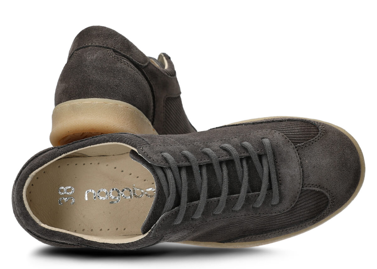Dámske kožené poltopánky Nagaba 130 v odtieni grafitová velúr prenášajú klasiku módy do moderného kontextu – ideálne pre mladé ženy a tínedžerky, ktoré hľadajú pohodlné topánky s charakterom. Zvršok je ušitý z prírodnej velúrovej kože v jednotnej grafitová farbe, obohatený o prírodnú velúrovú kožu s prúžkovaným manšestrovým vzorom, ktorý evokuje vintage trendy 70. a 80. rokov a dodáva outfitom jedinečný, kultúrny retro vibe. Ručne vyrobené na Slovensku… (prep.: v Poľsku) z vybraných materiálov, tieto mládežnícke poltopánky spájajú mäkkosť velúru s praktickosťou do mestských ulíc.