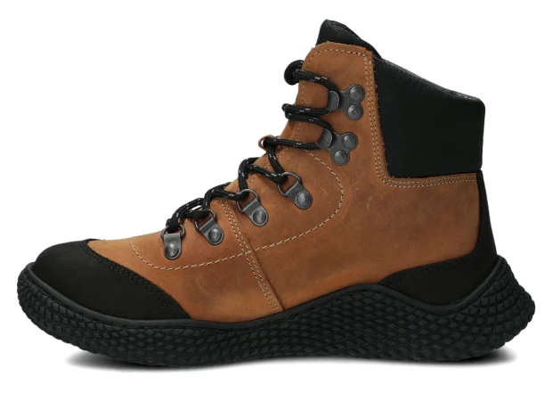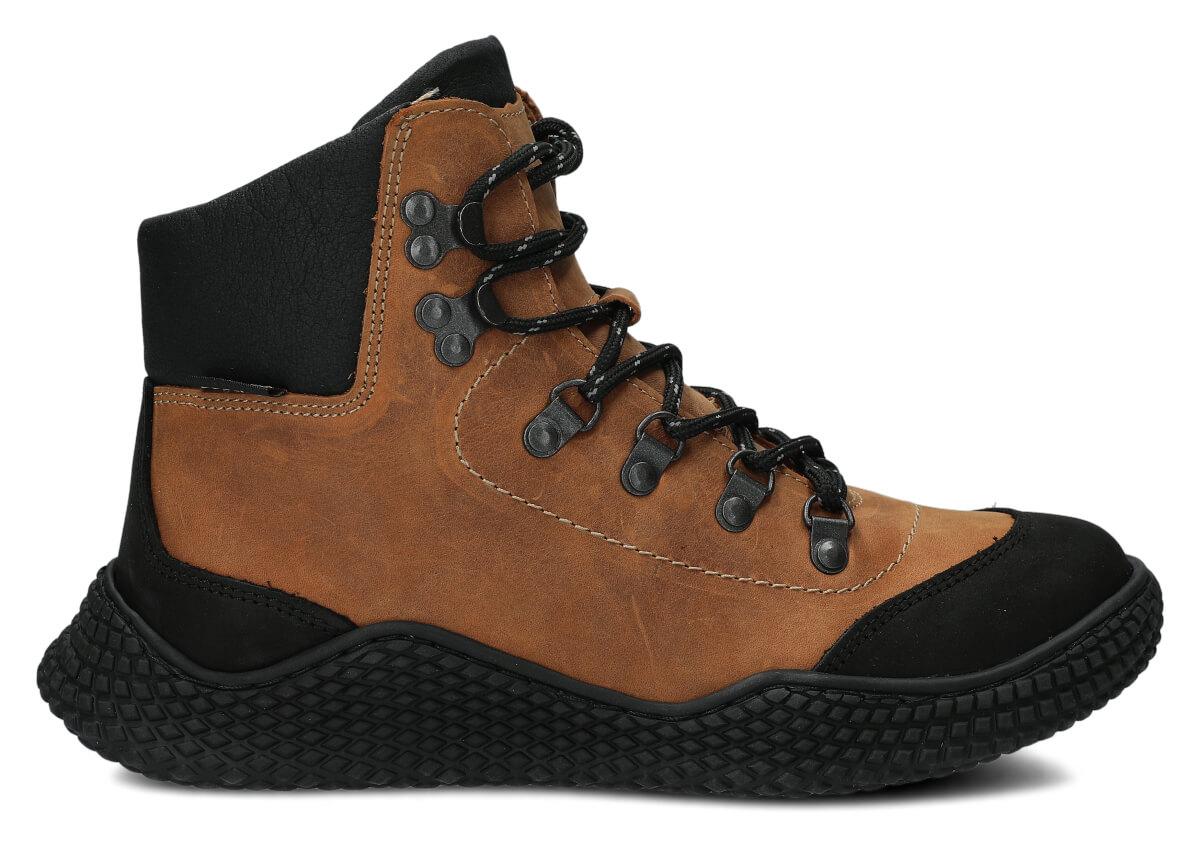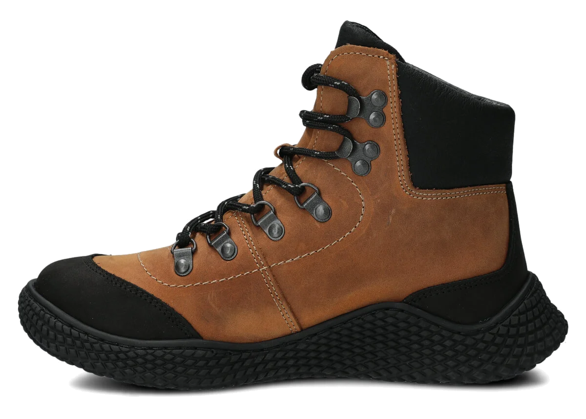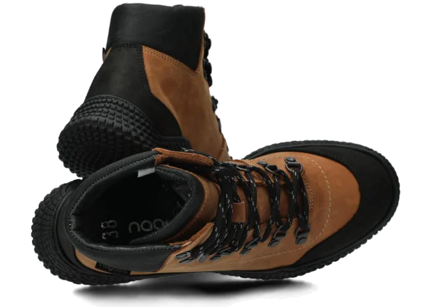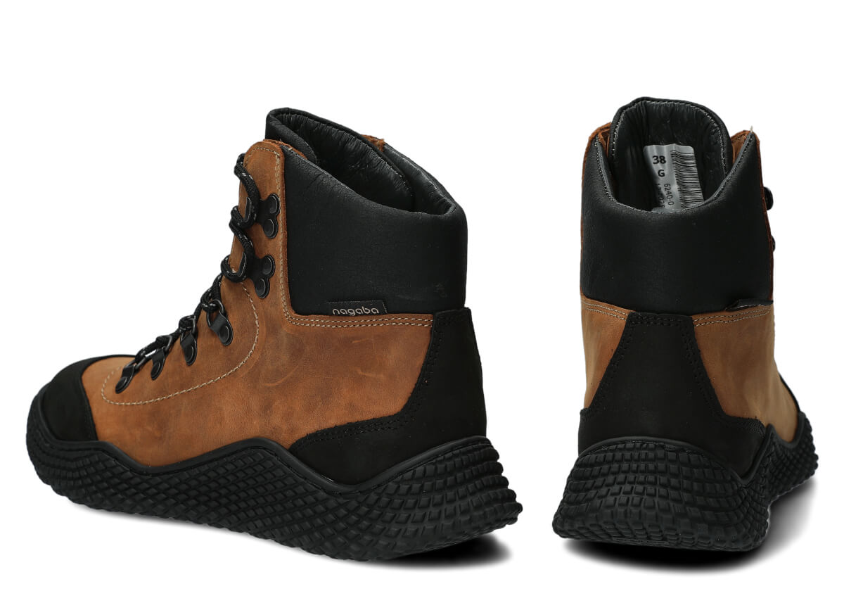 Dámske trekové topánky Nagaba 624 hnedá crazy sú modelom, ktorý presne zodpovedá vkusu žien a tínedžeriek – kombinujú športovú energiu s každodennou eleganciou. Vysoký zvršok nad členkom, kontrastná kombinácia hnedá a čiernej crazy kože a ručná výroba v Poľsku robia tieto mladistvé topánky moderné a súčasne mimoriadne odolné a pohodlné.