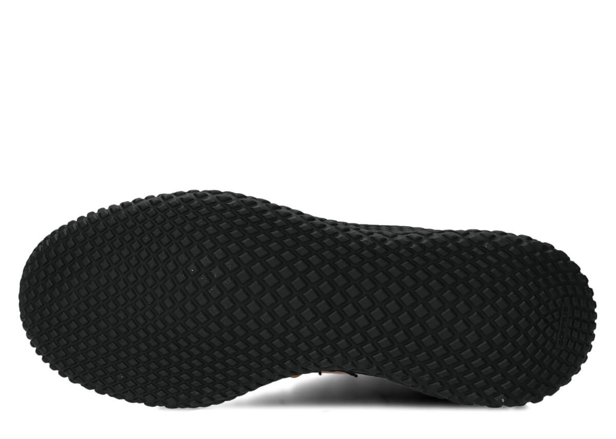 Zvršok pozostáva z kombinácie dvoch druhov crazy kože, pričom dominantná hnedá prírodná crazy koža v kombinácii s čiernymi vsadkami na špičke, päte a golieri vytvára veľmi charakteristický mestský outdoorový vzhľad. Hrubá, masívna, olejovaná koža s prírodnými škvrnami, oderkami a škrabancami – každý pár je trochu iný, čo poskytuje pocit jedinečnosti.