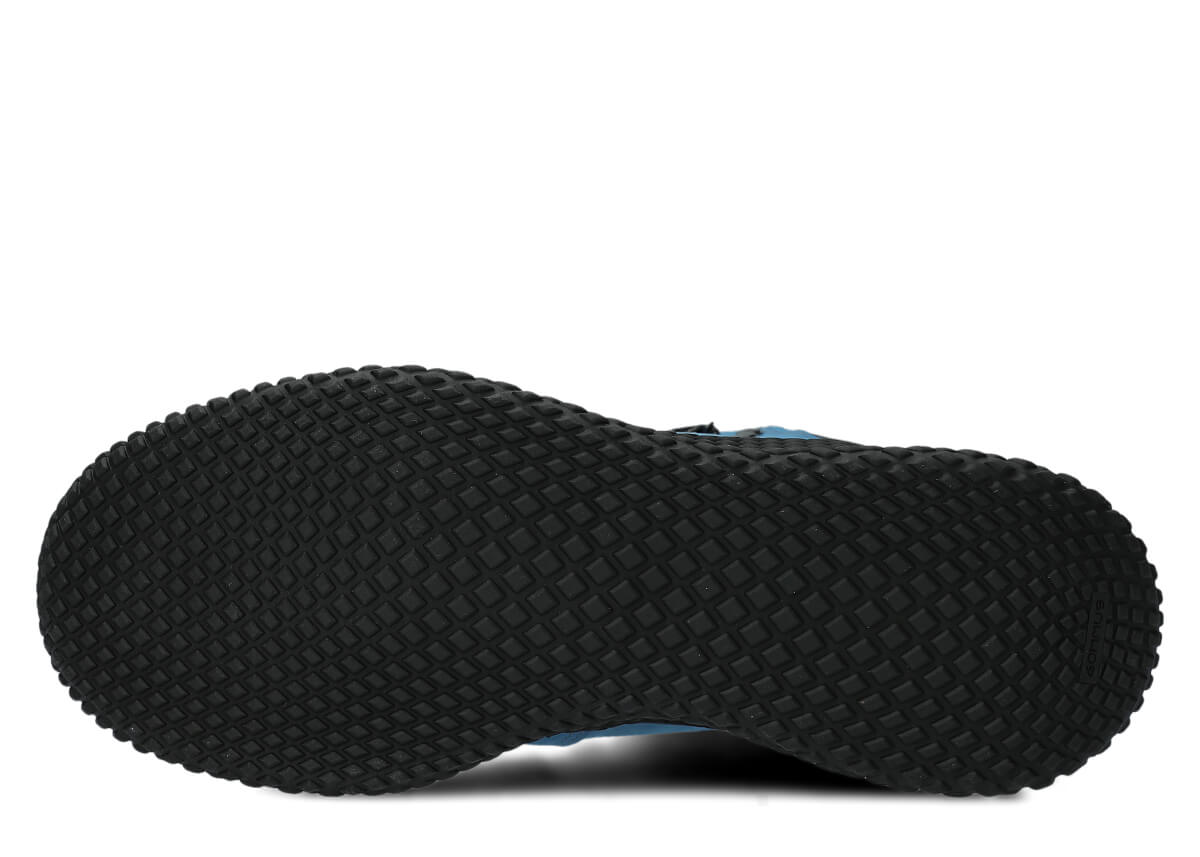 Zvršok pozostáva z kombinácie dvoch druhov crazy kože, pričom dominantná kobaltová prírodná crazy koža v kombinácii s čiernymi vsadkami na špičke, päte a golieri vytvára veľmi charakteristický mestský outdoorový vzhľad. Hrubá, masívna, olejovaná koža s prírodnými škvrnami, oderkami a škrabancami – každý pár je trochu iný, čo poskytuje pocit jedinečnosti.