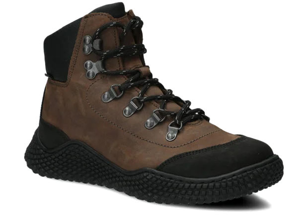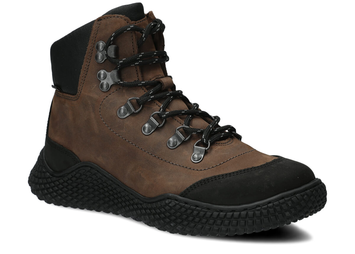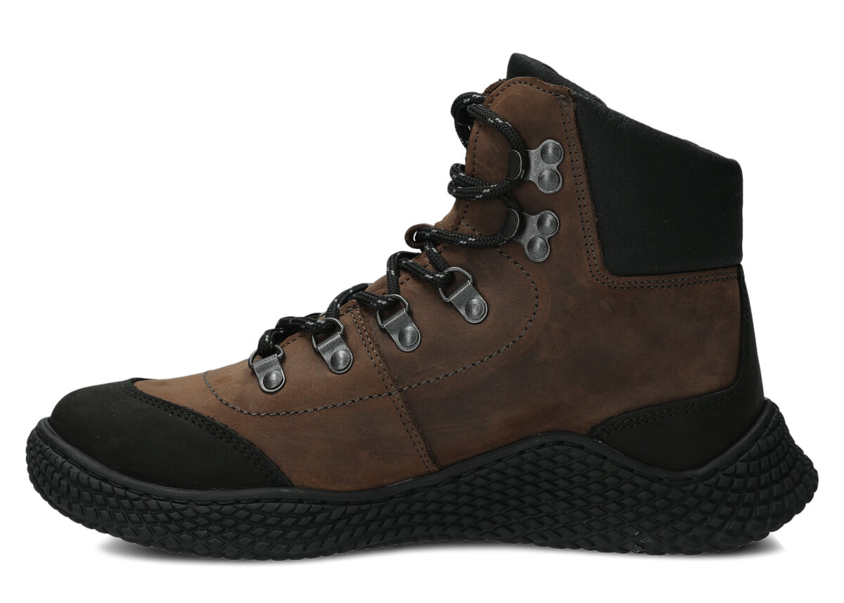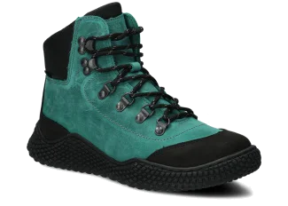 Dámske trekové topánky Nagaba 624 olivová crazy sú modelom, ktorý presne zodpovedá vkusu žien a tínedžeriek – kombinujú športovú energiu s každodennou eleganciou. Vysoký zvršok nad členkom, kontrastná kombinácia olivovej a čiernej crazy kože a ručná výroba v Poľsku robia tieto mladistvé topánky moderné a súčasne mimoriadne odolné a pohodlné.