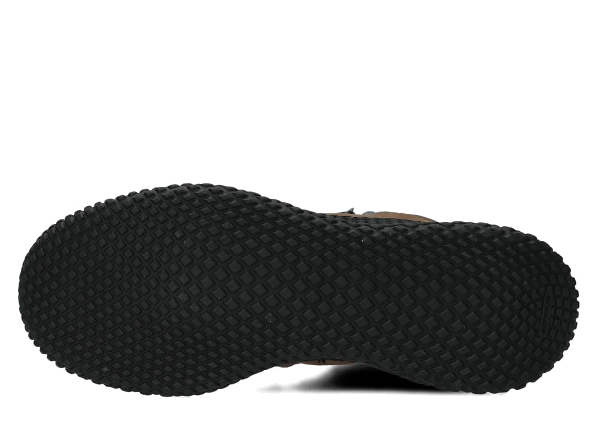 Zvršok pozostáva z kombinácie dvoch druhov crazy kože, pričom dominantná olivová prírodná crazy koža v kombinácii s čiernymi vsadkami na špičke, päte a golieri vytvára veľmi charakteristický mestský outdoorový vzhľad. Hrubá, masívna, olejovaná koža s prírodnými škvrnami, oderkami a škrabancami – každý pár je trochu iný, čo poskytuje pocit jedinečnosti.