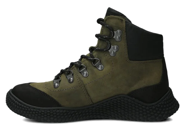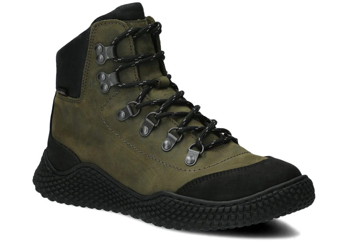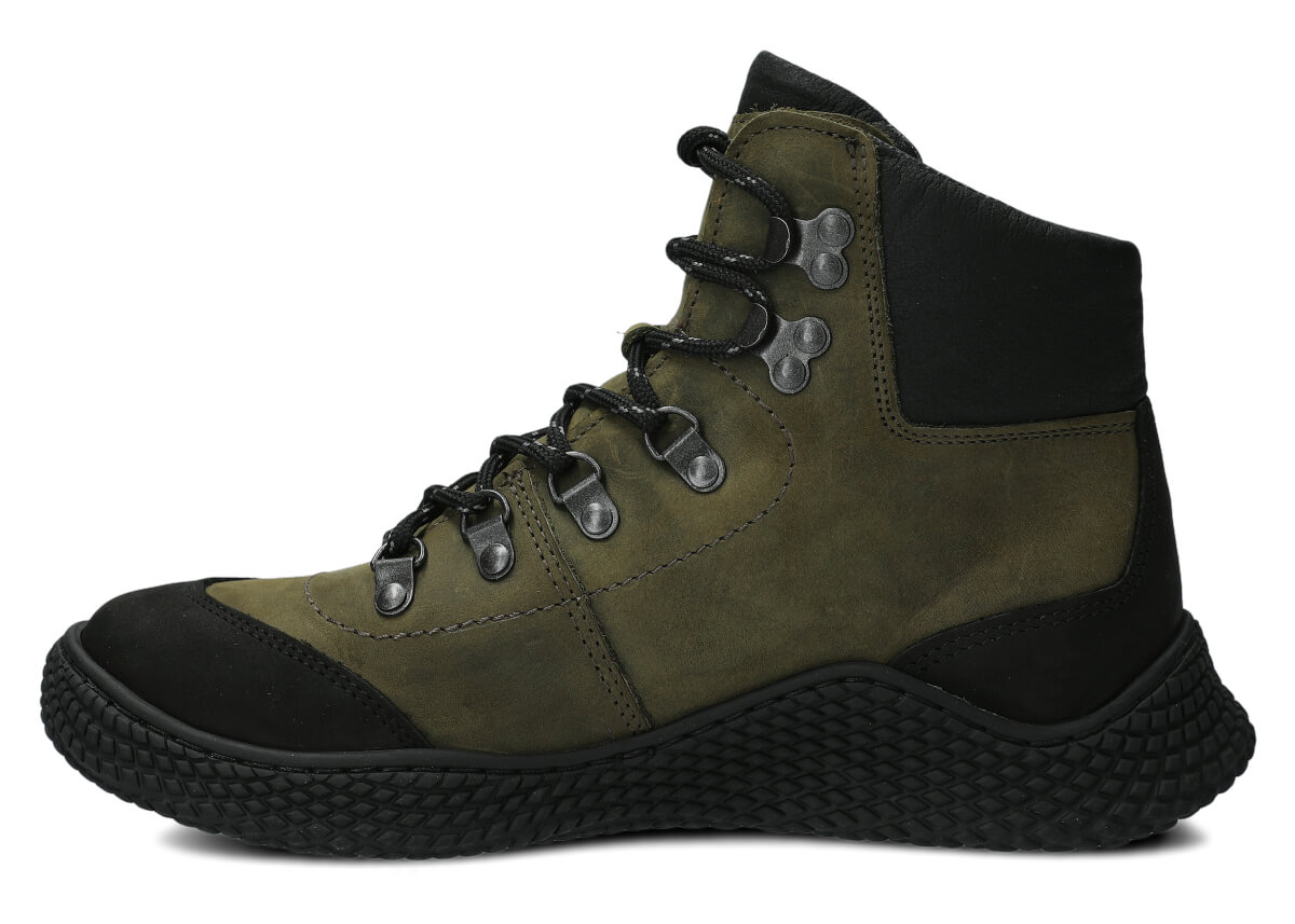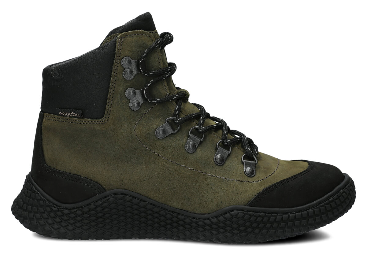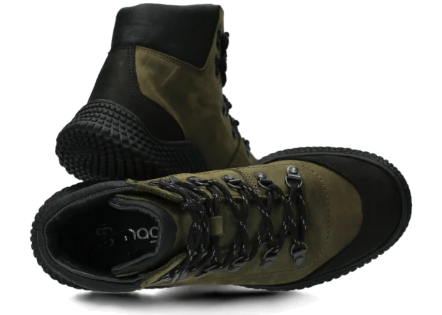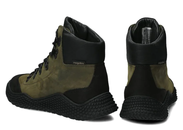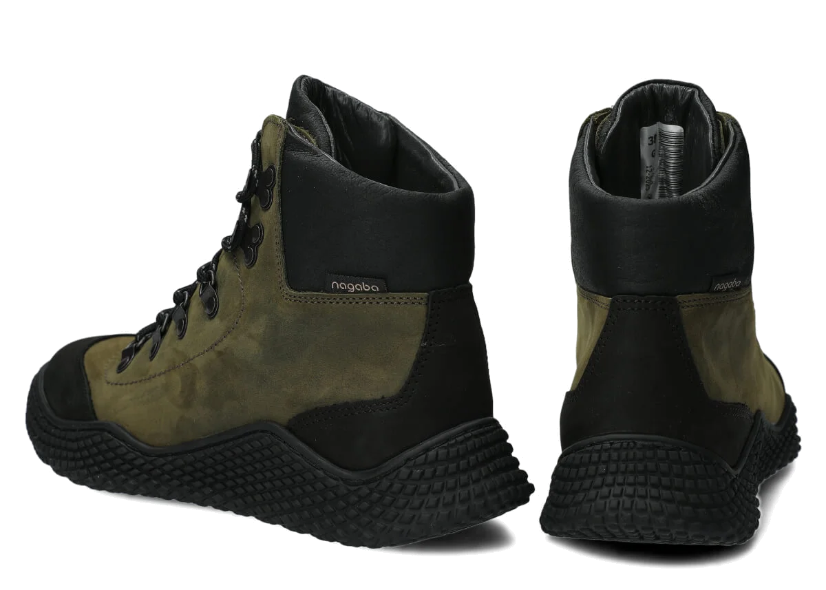 Dámske trekové topánky Nagaba 624 olivová zelená crazy sú modelom, ktorý presne zodpovedá vkusu žien a tínedžeriek – kombinujú športovú energiu s každodennou eleganciou. Vysoký zvršok nad členkom, kontrastná kombinácia olivová zelená a čiernej crazy kože a ručná výroba v Poľsku robia tieto mladistvé topánky moderné a súčasne mimoriadne odolné a pohodlné.