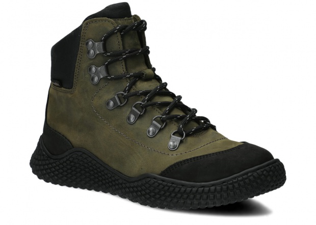 Dámske kožené trekové topánky Nagaba 624 olivová zelená crazy – Mladistvé kotníkové topánky na jeseň a zimu