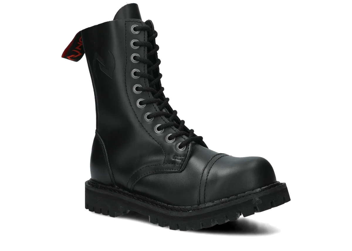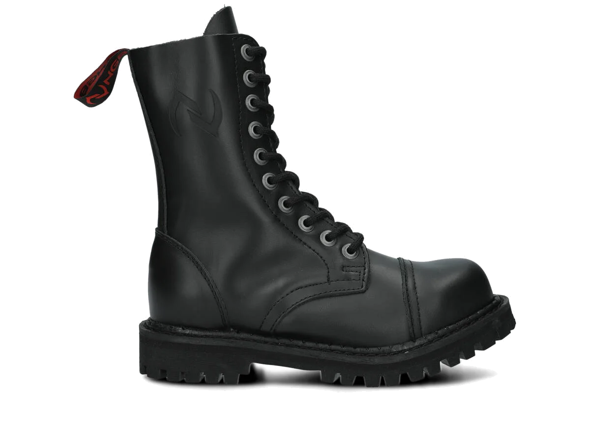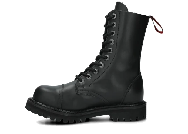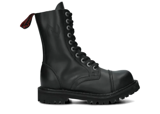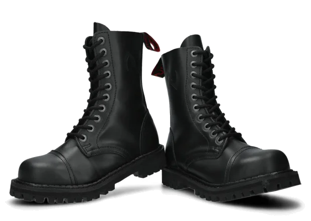 Ponúkané čierne glany s 10 dierkami boli vyrobené, aby poskytovali najlepšie pohodlie. Precízna výroba. Podrážka je vyrobená z pravej poľskej gumy s ozdobnými skrutkami a kovovým logom značky.