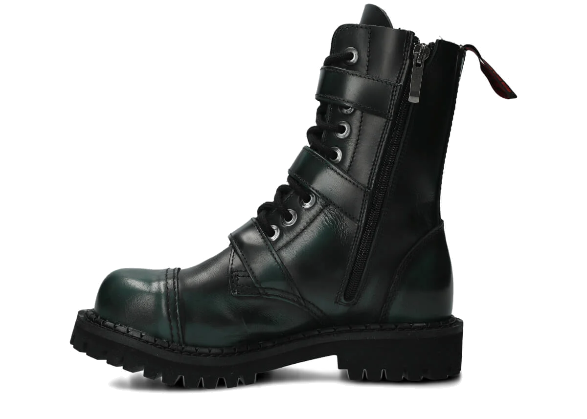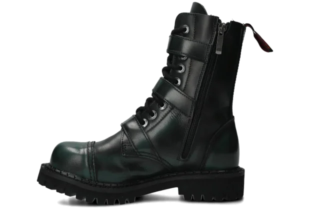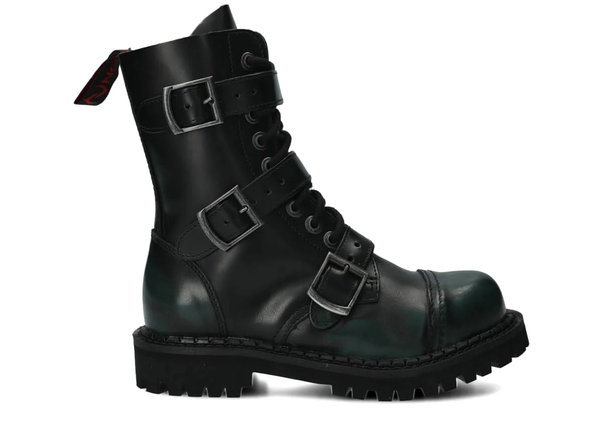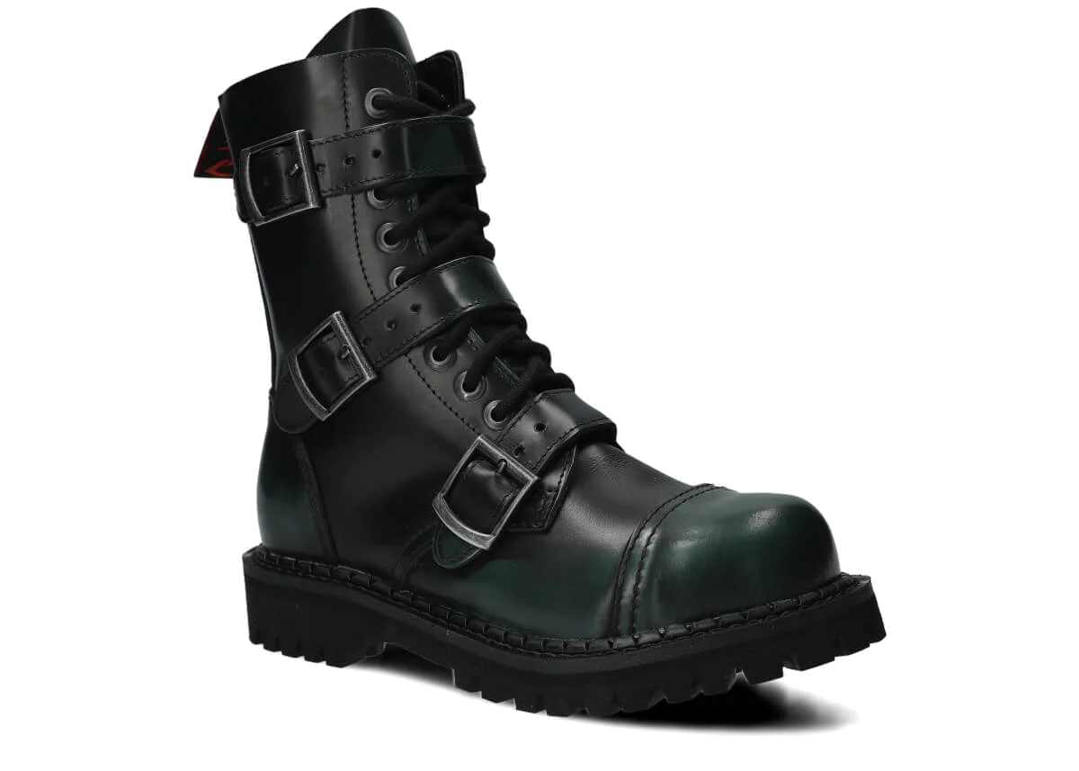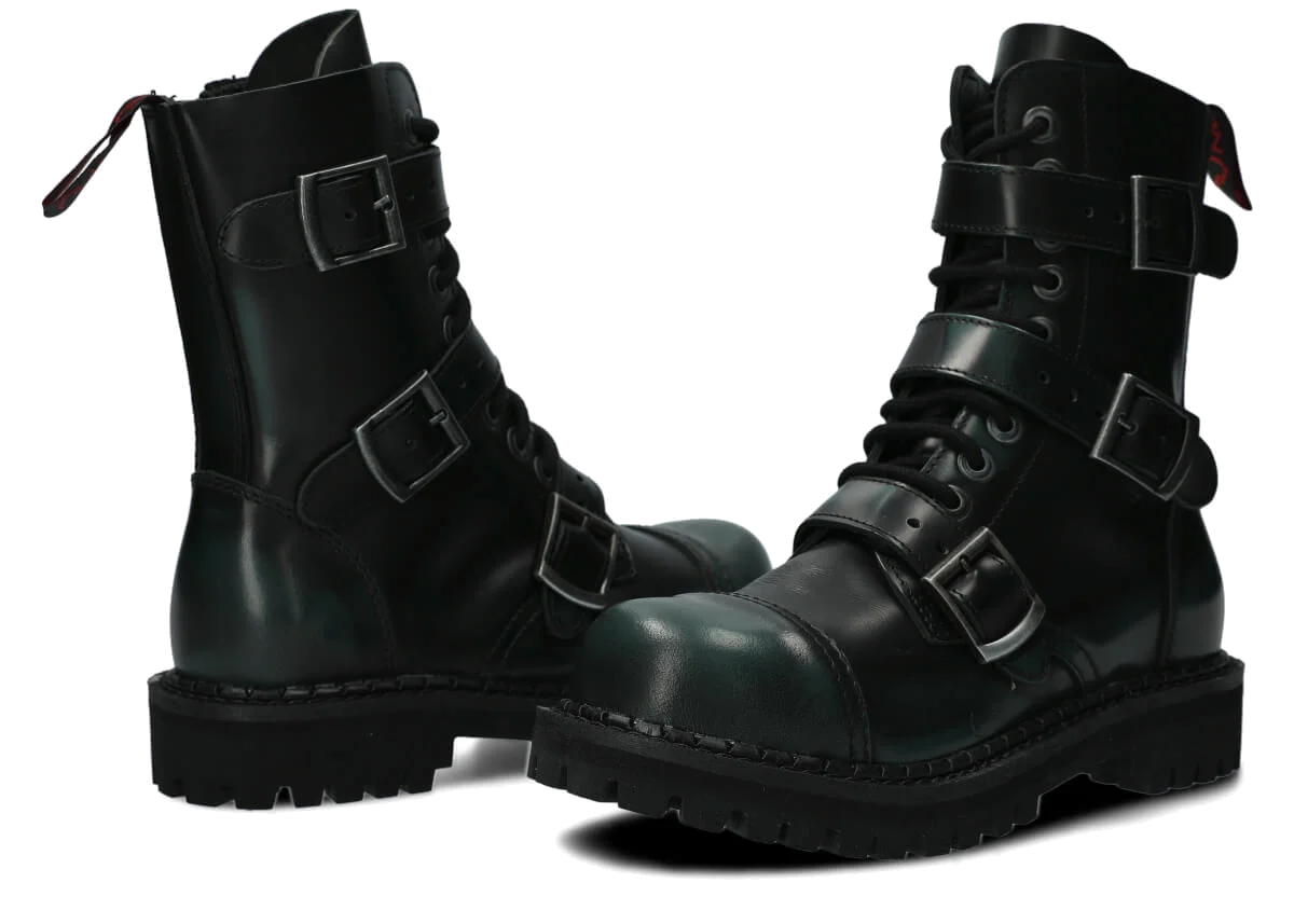 NAGABA 523 zeleno-čierne kabir kožené členkové topánky so železnými špičkami sú ideálnou voľbou pre všetkých, ktorí chcú spojiť štýl a bezpečnosť.
