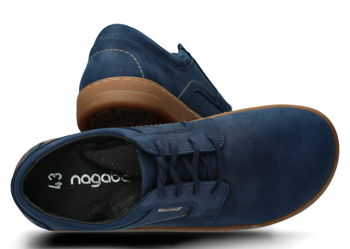 Poltopánky Nagaba 476 v odtieni modrá sa vyznačujú vrchom, podšívkou a výstelkou z prírodnej kože, ktorá zabezpečuje výbornú priedušnosť a pohodlie aj pri dlhodobom nosení. Odolná podrážka z TR-termokaučuku zaručuje nielen dlhú životnosť, ale aj vynikajúcu priľnavosť na rôznych povrchoch vďaka protisklzovej konštrukcii. Podrážka je nielen lepená, ale aj starostlivo prešitá, čo zvyšuje odolnosť topánok v každodennom použití. Inšpirované barefoot obuvou, poltopánky podporujú prirodzený pohyb chodidla a ponúkajú nezameniteľný komfort a zdravie.