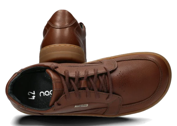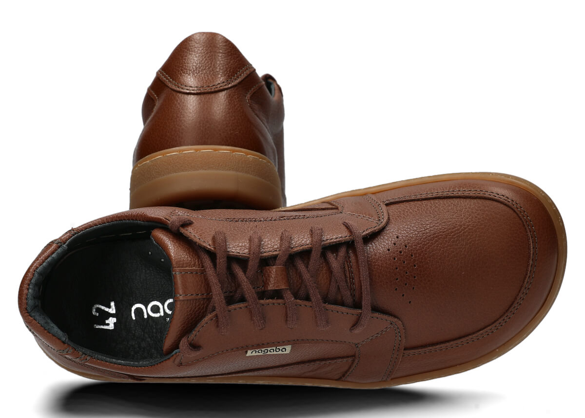 Široké pánske polobotky z kože Nagaba 480 hnedé rustic – barefoot inšpirované topánky pre každodenný komfort