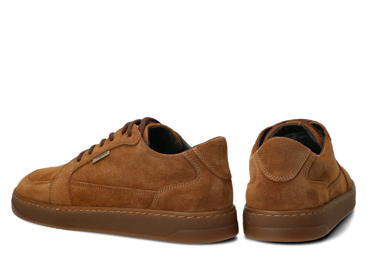 Zvršok je vyrobený z prírodnej semišovej kože, ktorá vzniká z dolnej vrstvy kože – triedenej kože – a po brúsení vytvára charakteristický, jemný vlas. Rovnako ako pri každej drsnej koži, preťahovanie prstom po povrchu zanecháva viditeľnú, tmavšiu stopu. Tento materiál je jemný na dotyk, má matný povrch a ľahko absorbuje vlhkosť, pod ktorej vplyvom tmavne. Vnútro z prírodnej bravčovej kože zabezpečuje hygienu a ventiláciu. TR-termoplastická gumená podrážka – lepená a obšitou po celom obvode – je protišmyková a plochá po celej dĺžke.